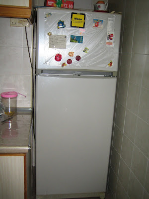 We had finally bought our bigger fridge from gaincity. Our new fridge arrived on Wed. I had called the new fridge, "mummy fridge" as it is only slightly smaller than the bigger fridge in the kitchen. Mummy fridge is now placed in the living room. For the baby fridge that i bought two years ago, we planned to give it to 'blood' when he returned to his hostel in Aug. He is now enjoying life in Germany.